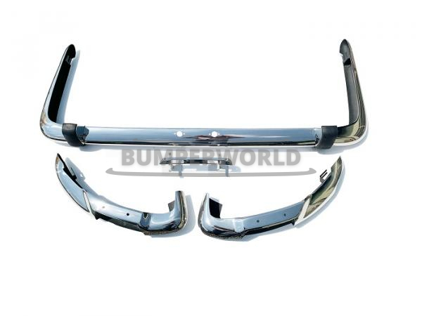 2 voorbumpers, 1 achterbumper uit 3 delen, 2 rozetten met rubber, 1 nummerplaathouder.